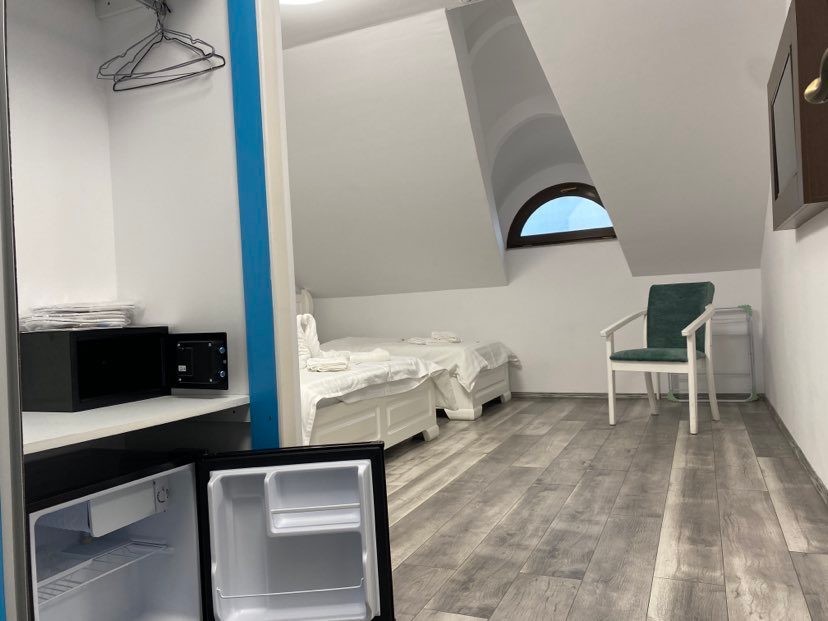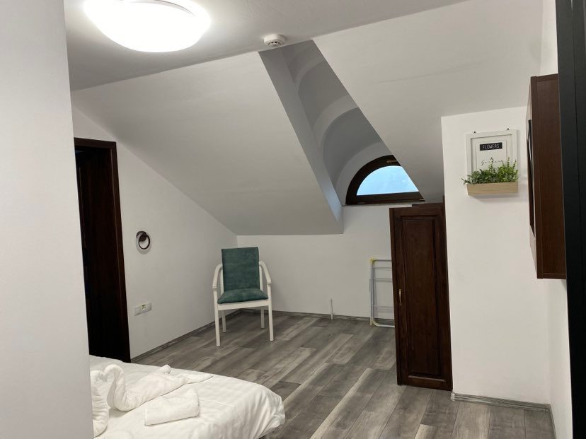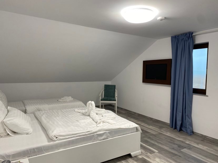 Cameră triplă cu pat matrimonial 160/200 și un pat single 90/200 ,1 camera cvadruplă cu pat matrimonial 160/200 și un pat de 140/200
