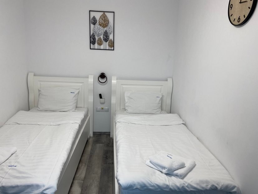 - apartament cu pat matrimonial 160/200 într-o cameră, iar in cealaltă cameră 2 paturi single 90/200